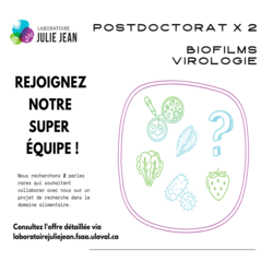 Nous recherchons 2 stagiaires postdoctoraux motivés qui souhaitent collaborer avec nous sur un projet de recherche dans le domaine alimentaire.